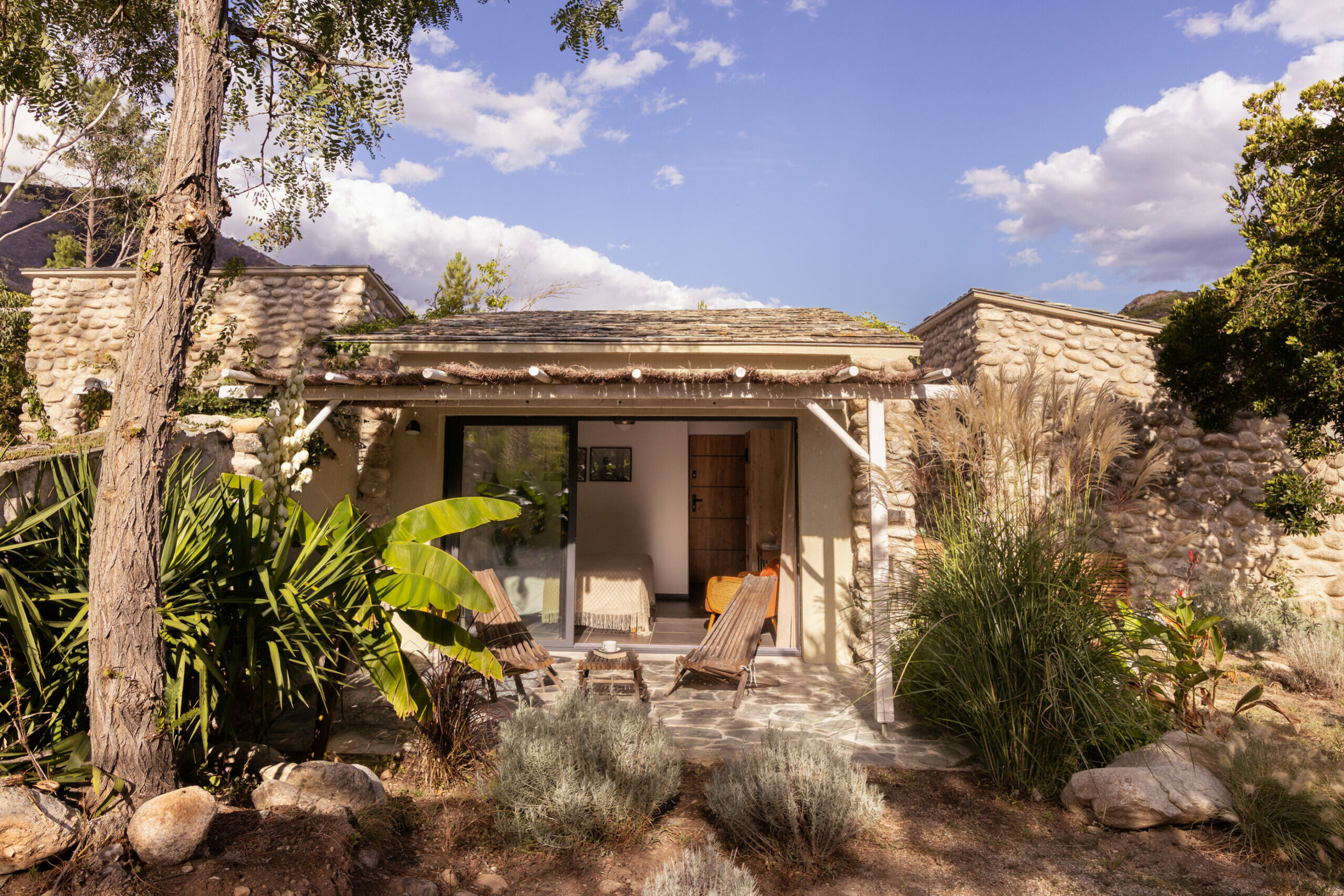 Dispersées dans le domaine comme un petit hameau, les Caselle offrent une manière intime et authentique d’habiter. Inspirées des constructions traditionnelles en pierre, elles se fondent naturellement dans le paysage et s’ouvrent sur la lumière, la végétation et la rivière en contrebas.